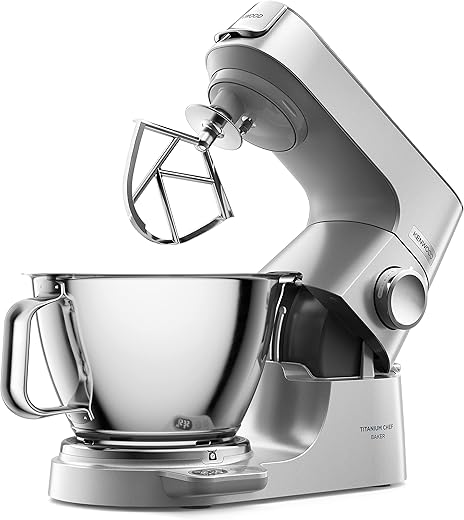 Kenwood Titanium Chef Patissier XL KWL90.034SI, Robot Patissier Balance Intégrée, Batteur K, Pétrin, Fouet, Batteur Souple, Deux Bols, Couvercle Anti-Projections, 1400W, Acier,…