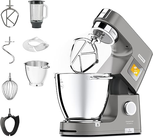 Kenwood Titanium Chef Baker KVC85.004SI Robot Patissier avec Balance Intégrée, Inclus Ensemble Pâtisserie 3 Pièces, Bol de Mélange de 5L et 3.5L, Régulateur de Vitesse…