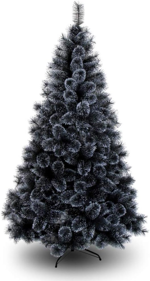 Sapin de Noël Artificiel Noir, Support en métal à charnière de qualité supérieure, décoration de Vacances, Arbre de Noël-Noir 6,9 Pieds (210 cm) Le Nouveau