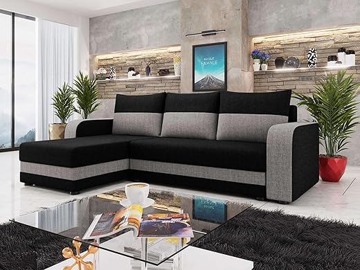 Best Mobilier – Harvey – canapé d’angle réversible – Convertible – avec Coffre – en Tissu – 4 Places – Style Contemporain – Noir/Gris