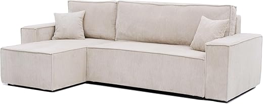 Best Mobilier – Topaze – canapé 3 Places – Convertible avec Coffre – en Velours côtelé – Beige