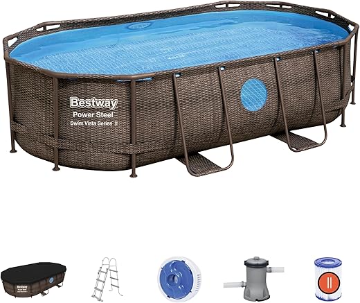 Bestway Piscine Hors Sol Ovale Power Steel Swim Vista rotin 427 x 250 x 100cm