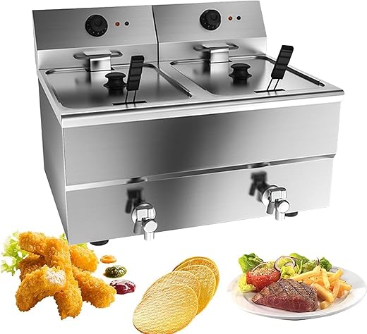 Friteuse à Gaz Propane, Commerciale Gaz Propane Friteuse Réservoir Amovible, en Acier Inoxydable avec Panier à Rôtir, Petite Friteuse pour Poulet, Snacks Maison,Double