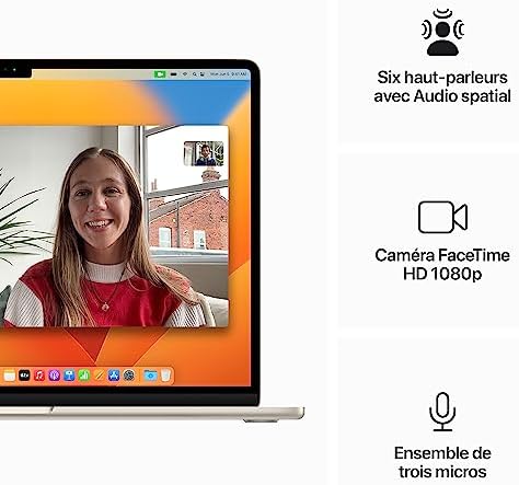 - CAMÉRA ET AUDIO AVANCÉS – Profitez d’une caméra FaceTime HD 1080p et d’un ensemble de trois micros pour que tout soit clair, net, précis. Et plongez au cœur des films et de la musique grâce à un système audio à six haut parleurs avec Audio spatial.