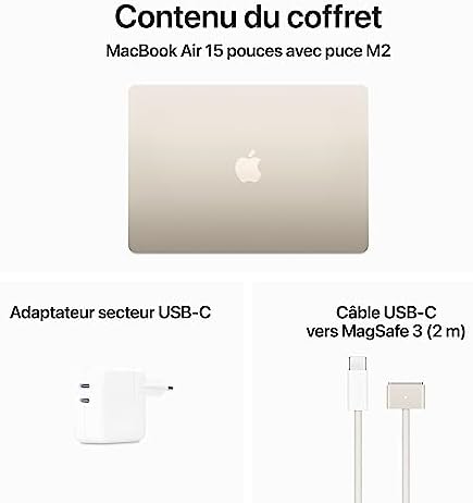 Apple 2023 MacBook Air Portable avec Puce M2 : Écran Liquid Retina de 15,3 Pouces, 8 Go de RAM, 512 Go de Stockage SSD, caméra FaceTime HD 1080p. Compatible avec l’iPhone/iPad ;…