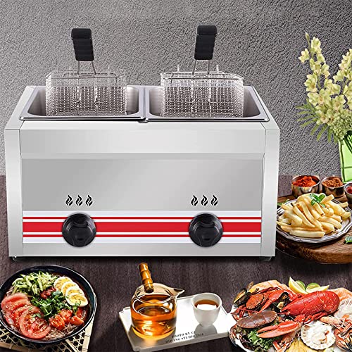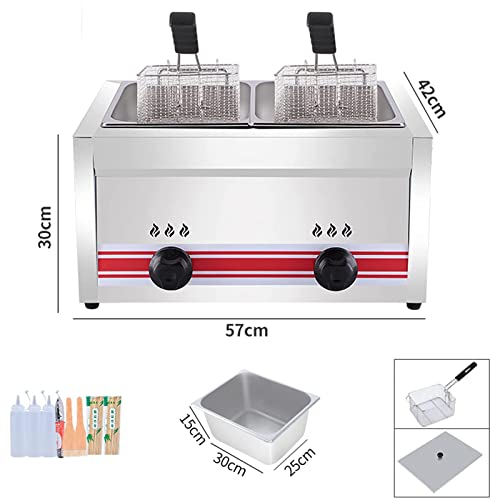 CGLYYDS Friteuse à gaz Professionnelle GPL, friteuse Commerciale en Acier Inoxydable avec paniers et couvercles de friteuse, pour la Cuisine à Domicile de Restaurant…