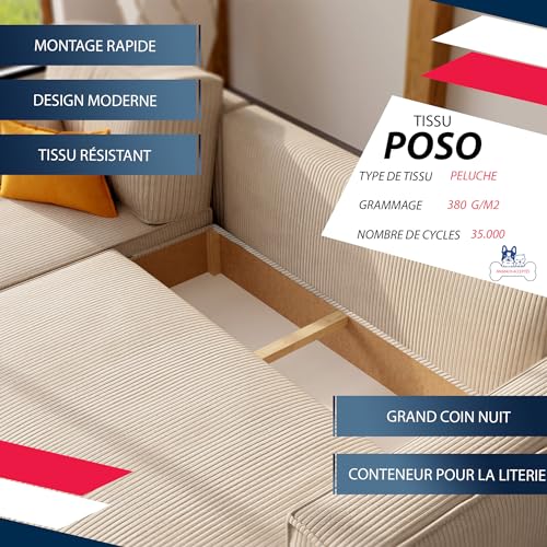 - 🛋 Ce meuble est parfait pour votre meuble salon grâce à sa mousse T30. La mousse T30, reconnue pour sa densité élevée, assure une fermeté exceptionnelle et une élasticité remarquable. Ce canape lit convertible garantit une grande durabilité et un confort supérieur, parfait pour les matelas, sans risque de déformation.