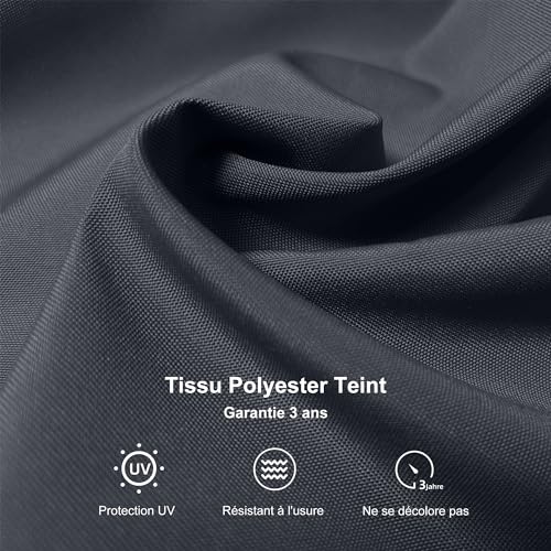 - Notre toile de parasol est en polyester teinté en masse de 240 g/m² avec un UPF de 50+, offrant une protection efficace contre les rayons UV. Elle est durable, résistante à la décoloration et adaptée à une utilisation extérieure prolongée