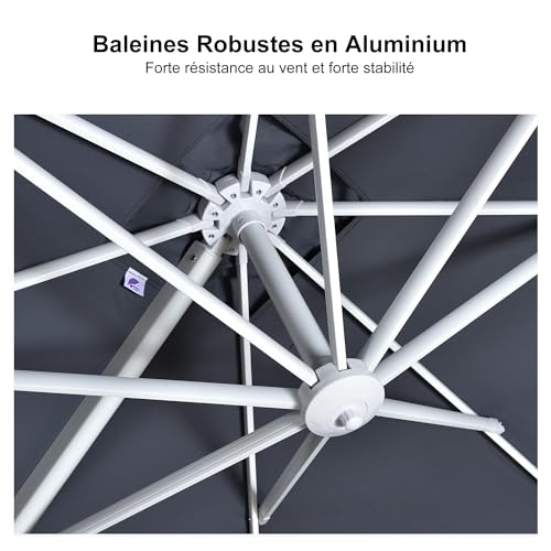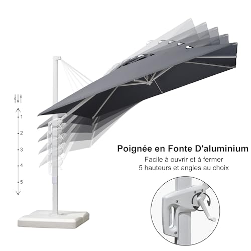 - La conception à manivelle permet d’ouvrir et de fermer le parasol facilement, rendant son utilisation très pratique