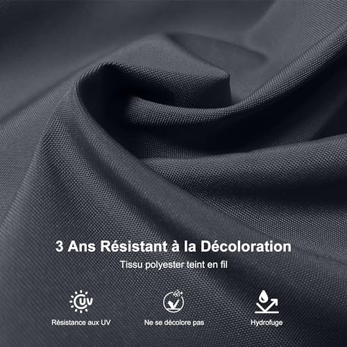 - Notre toile de parasol est en polyester teinté en masse de 240 g/m² avec un UPF de 50+, offrant une protection efficace contre les rayons UV. Elle est durable, résistante à la décoloration et adaptée à une utilisation extérieure prolongée