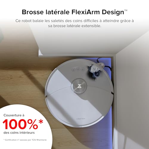 - 【Brosse Latérale FlexiArm Design】Aspirateur robot balaie les saletés des coins difficiles à atteindre grâce à sa brosse latérale extensible, Robot aspirateur laveur peut couvrir 100% des coins intérieurs.