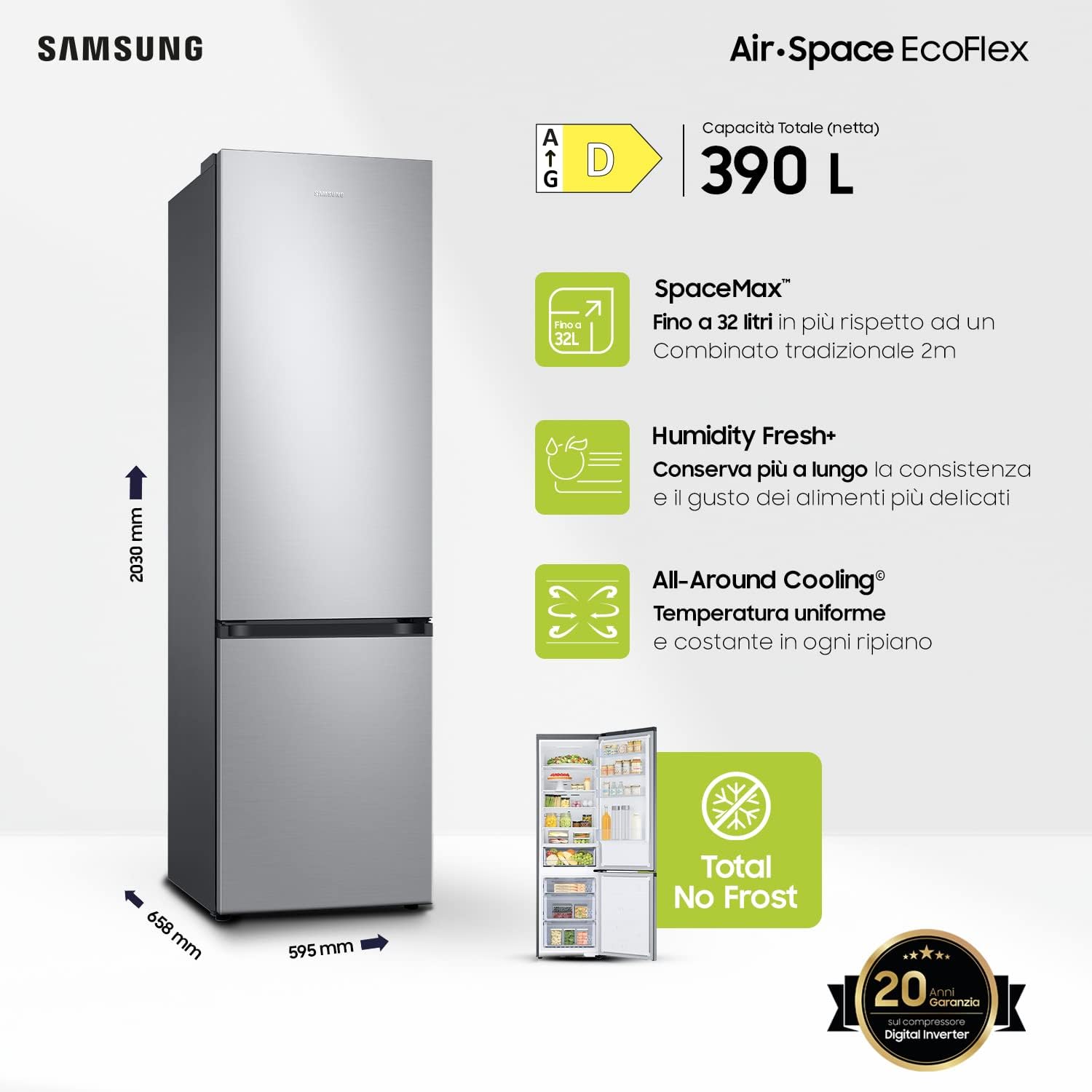 • Total No Frost : contrecarre la formation de givre, de moisissures et de bactéries
