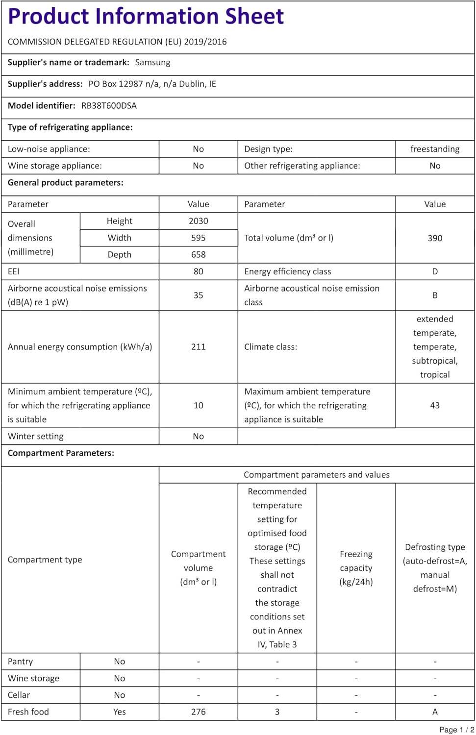 Samsung Electroménagers RB38T600DSA / EF Réfrigérateur combiné RB7300T, 385 L, Silver Inox