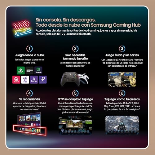 - Le meilleur Smart TV : Contenus, plus de 100 chaînes gratuites et exclusives avec Samsung TV Plus, jeux en ligne avec Gaming Hub et tous vos appareils connectés via SmartThings.