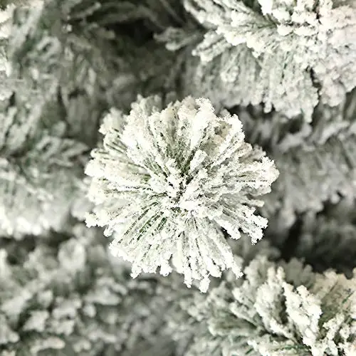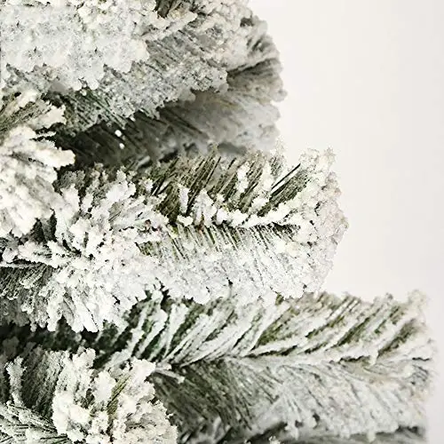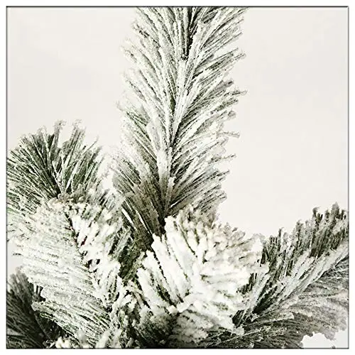 - Les feuilles enneigées créent une sensation hivernale unique, faisant de cet arbre de Noël un ajout accrocheur à n’importe quelle pièce pendant les vacances.