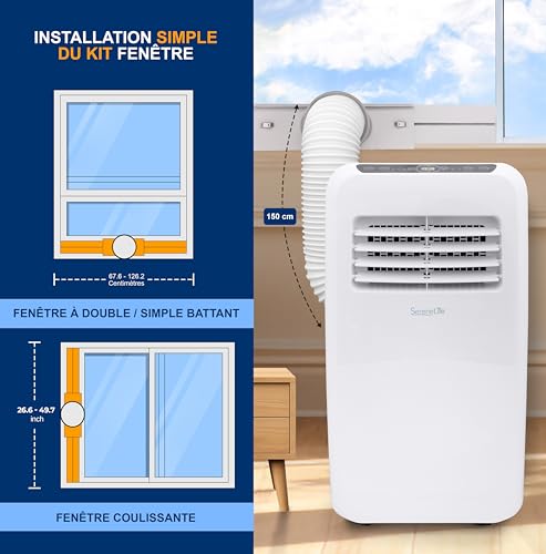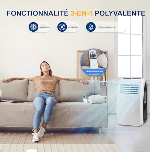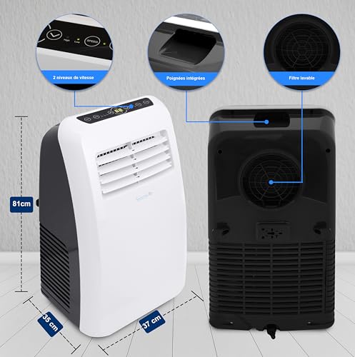 - DÉSHUMIDIFICATEUR INTÉGRÉ : Vous n’obtenez pas seulement l’effet de refroidissement de la climatisation mobile, mais vous aide également à réduire les niveaux d’humidité, ce qui représente une économie financière et d’espace considérable !
