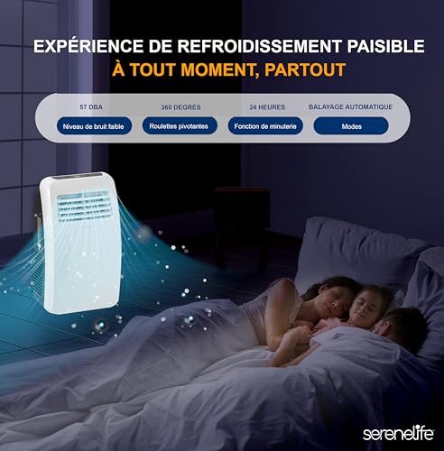 - PRATIQUE ET PORTABLE : Le Climatiseur Mobile SereneLife présente un design léger, pratique et élégant, conçu pour être utilisé dans la chambre à coucher, le salon ou le garage à domicile ou au bureau. Ce Mini Clim est équipé de roulettes pour une portabilité facile. Matériau de construction : Boîtier en ABS ingénierie.