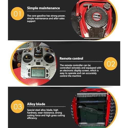 • Qualité de coupe : l’utilisation d’une lame en manganèse en deux parties garantit une coupe précise et fine qui recouvre l’herbe et aide réellement à fertiliser votre pelouse. Que vous tondiez dans des parcs et jardins, des tourbières inondées ou des buissons denses, ces plateaux de coupe offrent une qualité constante. Coupez rapidement les mauvaises herbes à une hauteur de 20 à 150 mm. La télécommande est flexible, rotation in situ à 360 degrés et rotation rapide, économisant du temps et des