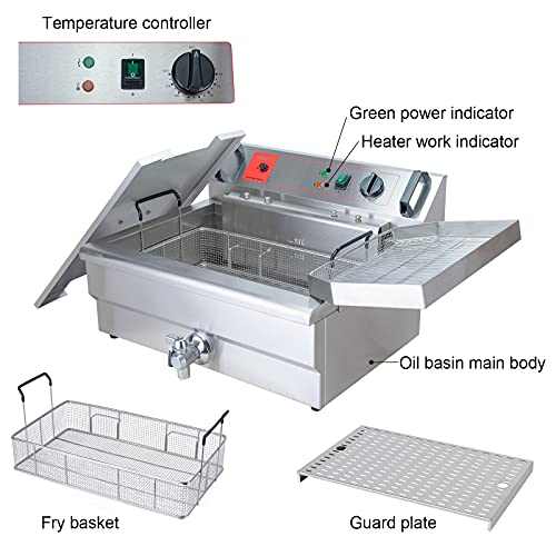 Valgus Friteuse électrique commerciale en acier inoxydable 3000W 30L Machine à frire de cuisine de grande capacité avec panier et couvercle, système de vidange pour le…