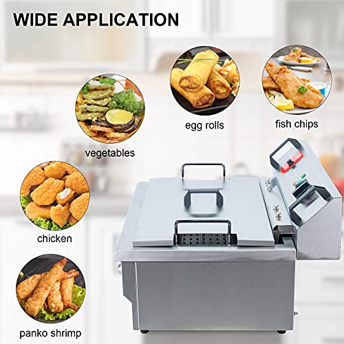 • CHAUFFAGE RAPIDE: La friteuse électrique 220-240 V est équipée d’un boîtier de machine de galvanoplastie de haute qualité en métal, d’un panier en acier inoxydable, d’un robinet et d’un tuyau de chauffage amélioré qui chauffe encore plus rapidement. Le thermostat EGO ajuste la température (50-190 ° C) ce qui est idéal pour divers plats frits tels que les fish n chips, les rouleaux de printemps, les légumes, le poulet, les crevettes panko.