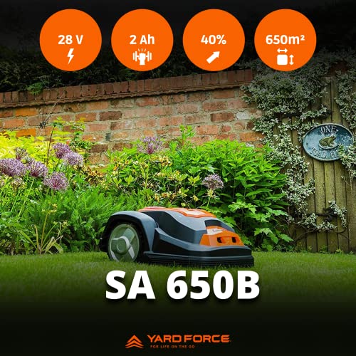 Yard Force – Robot Tondeuse SA650Bavec Capteurs d’obstacles et de Soulèvement pour Pelouses jusqu’à 650m² Orange