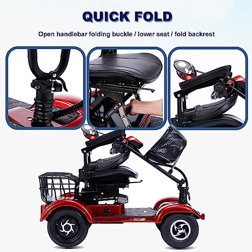 - [PAS DE DEMONTAGE REQUIS & RANGEMENT PORTABLE] – Le design sans démontage du scooter pliant vous aide à le plier rapidement et à le transporter facilement. Il peut être plié jusqu’à une dimension de [41.3 × 21.6 × 21.6 pouces], le scooter a une poignée de traction à l’avant, que vous cherchiez à le ranger dans le coffre de votre voiture ou à l’emmener dans les transports publics, ce scooter de mobilité est conçu pour vous rendre la vie plus facile.
