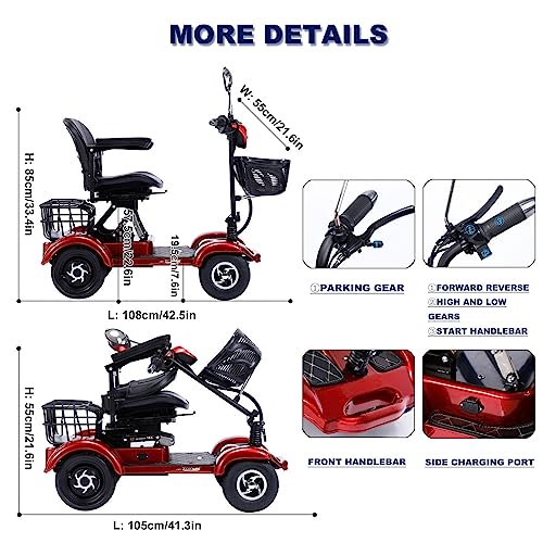 - [ASSISTEMENT COMFORTABLE] – Le siège et le dossier en cuir épais et luxueux offrent un amortissement et un soutien en douceur. Le siège réglable en hauteur peut facilement être personnalisé pour détendre vos jambes, vous apportant une expérience de conduite confortable. Le scooter électrique est également entouré de deux accoudoirs rembourrés qui peuvent être relevés pour une plus grande commodité lorsque vous montez ou descendez du scooter.